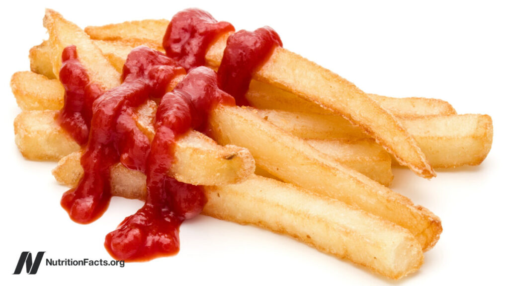 Jų išvados? Kaip matote žemiau ir 3:51 mano vaizdo įrašądaugiau augalinės kilmės dieta apskritai buvo naudinga siekiant sumažinti diabeto riziką, tačiau valgant ypač sveiką augalinį maistą sekėsi geriau, beveik perpus sumažinant riziką, o valgantiesiems daugiau nesveiko augalinio maisto sekėsi blogiau, kaip parodyta diagramoje. žemiau ir 4:03 val.