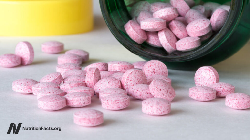 Kartais vegetarams sekėsi dar blogiau. Blogesnis arterijų sienelės storis ir blogesnė arterijų sienelės funkcija, „pirmą kartą keliantis susirūpinimą dėl vegetarų kraujagyslių sveikatos“ – likus daugiau nei dešimtmečiui iki naujo insulto tyrimo. Taip, jų B12 kiekis buvo mažas ir, taip, homocisteinas buvo didelis, „rodo, kad vitamino B12 trūkumas vegetarams gali turėti neigiamą poveikį jų kraujagyslių sveikatai“. Tačiau mums reikia intervencinio tyrimo, kurio metu dalyviams suteikiamas B12, kad pamatytų, ar tai ištaiso problemą, ir štai. Šio dvigubai aklo, placebu kontroliuojamo, atsitiktinių imčių kryžminio tyrimo pavadinimas sako: „Vitamino B-12 papildai pagerina arterijų funkciją vegetarams, kurių vitamino B-12 būklė nenormali“. Taigi, vitamino B12 būklės pablogėjimas tarp tų, kurie valgo daugiau augalinės kilmės dietų dėl to, kad nevartoja B12 papildų arba reguliariai valgo vitaminu B12 praturtintą maistą, gali paaiškinti didesnę vegetarų insulto riziką.